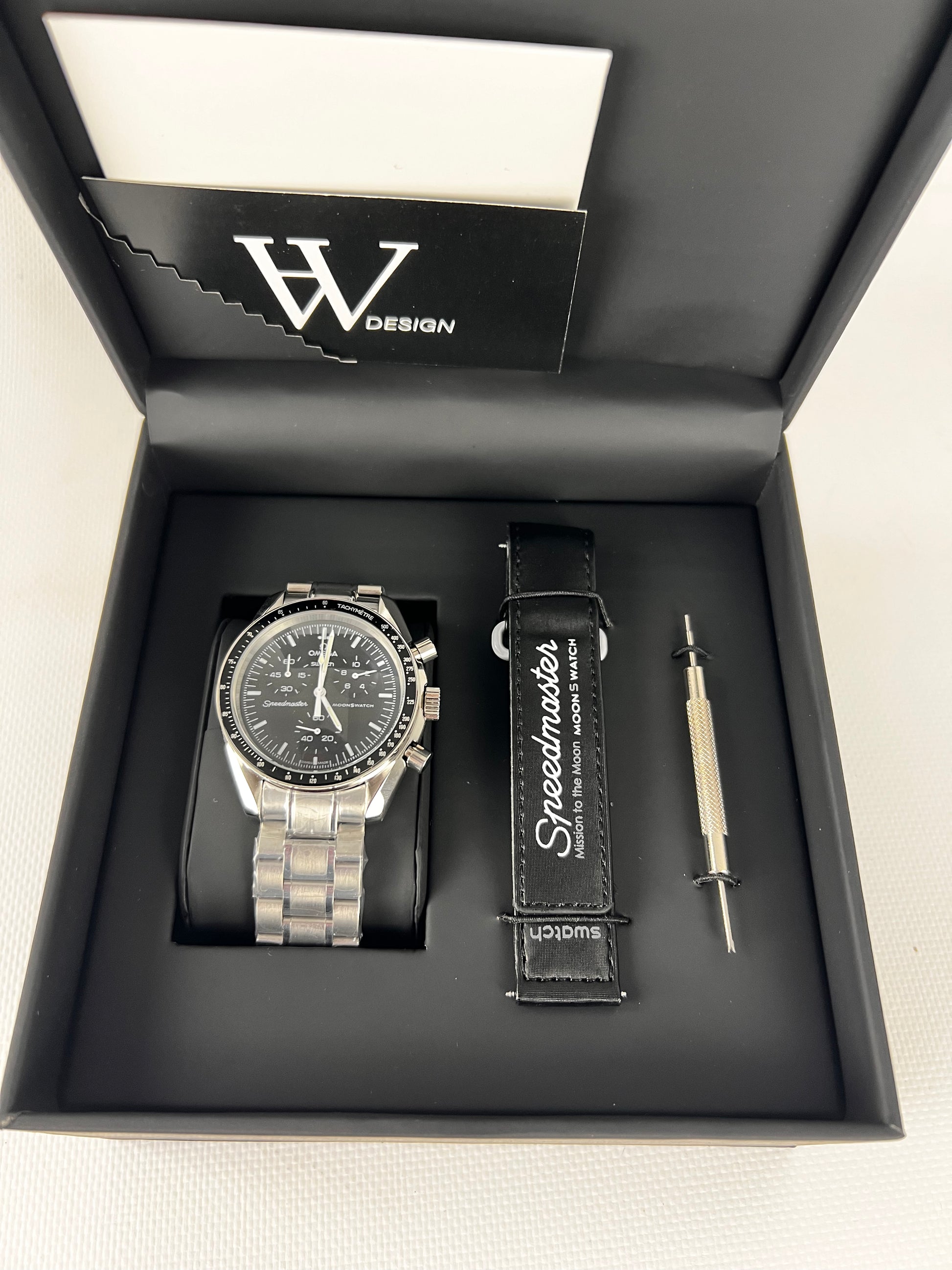 Basado en el Omega x Swatch Mission to Moon, en HW presentamos su mejor versión, reemplazando la caja original de plástico por una caja y correa en acero inoxidable 316l y cristal de Zafiro.