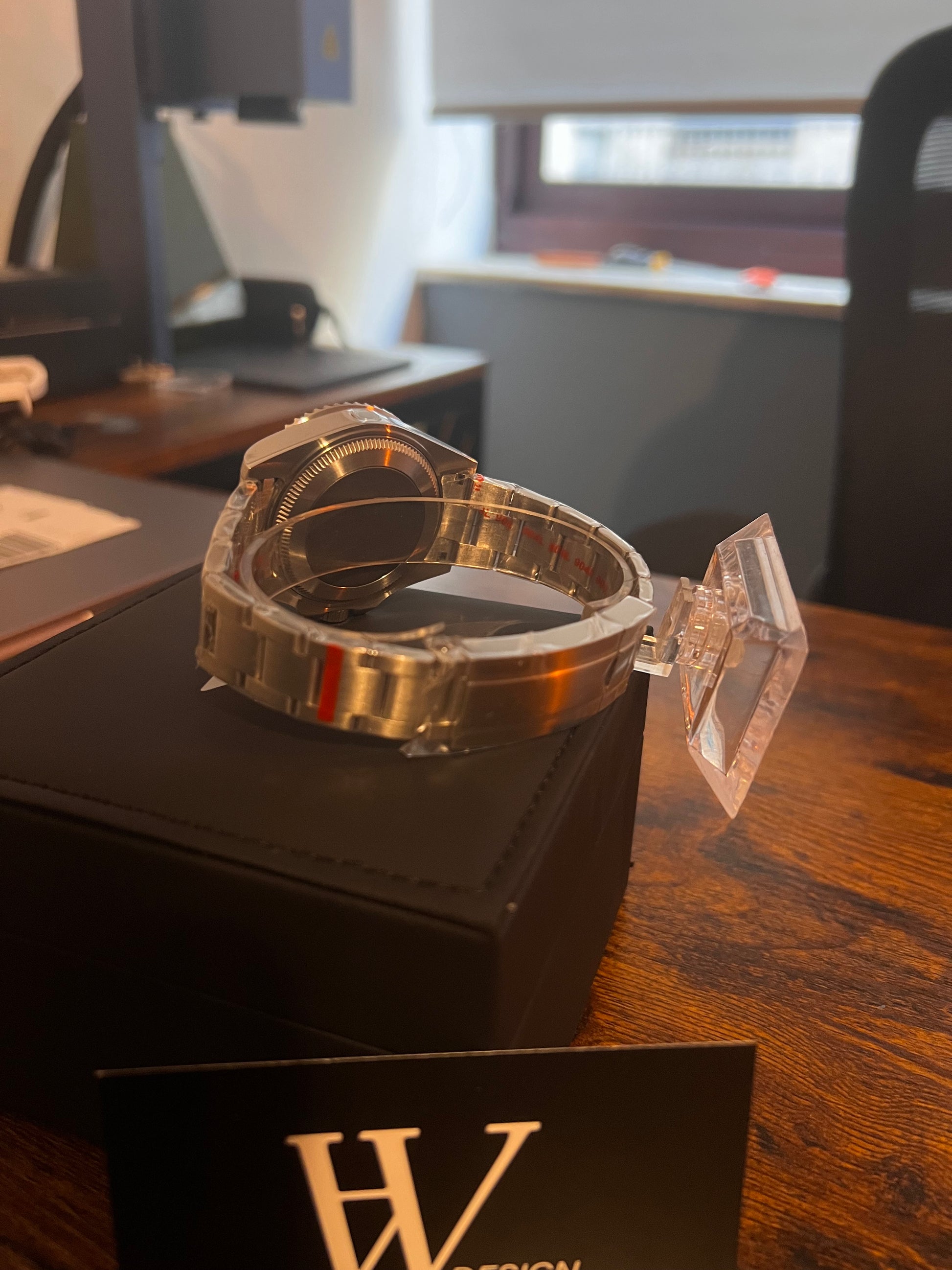 En HW Design creemos que cada reloj merece una presentación de lujo. Es por eso que hemos diseñado cuidadosamente una experiencia de desempaquetado excepcional para igualar la calidad de nuestros relojes personalizados. Su reloj llega en una caja de cuero de alta calidad, diseñada para brindar elegancia y durabilidad. La textura suave, las costuras refinadas y la sensación premium lo convierten en un estuche de almacenamiento perfecto para su reloj. Al abrir la caja, se encuentra con una impresión elegante y sofisticada, que garantiza que su nuevo reloj se presente de la mejor manera posible. Más que un simple embalaje, nuestra caja de cuero es una declaración de calidad y artesanía, diseñada para proteger y exhibir su reloj en los años venideros.