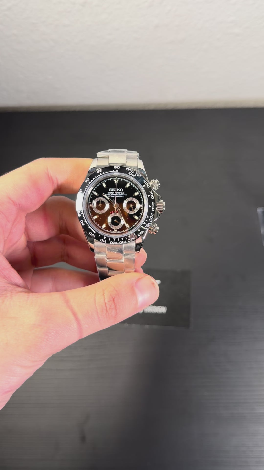 Descubre el Seiko Mod Daytona , una pieza inspirada en el legendario diseño Daytona y equipada con el prestigioso movimiento híbrido Seiko VK63 . Este reloj de 40 mm combina a la perfección elegancia, precisión y accesibilidad.