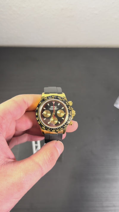 Descubre el Seiko Mod Daytona , una pieza inspirada en el legendario diseño Daytona y equipada con el prestigioso movimiento híbrido Seiko VK63 . Este reloj de 40 mm combina a la perfección elegancia, precisión y accesibilidad.
