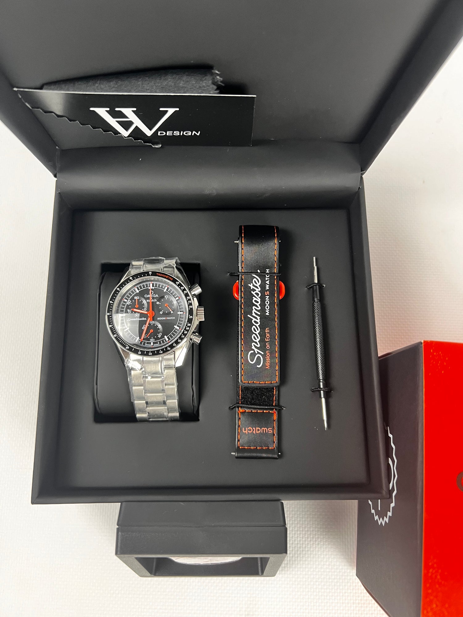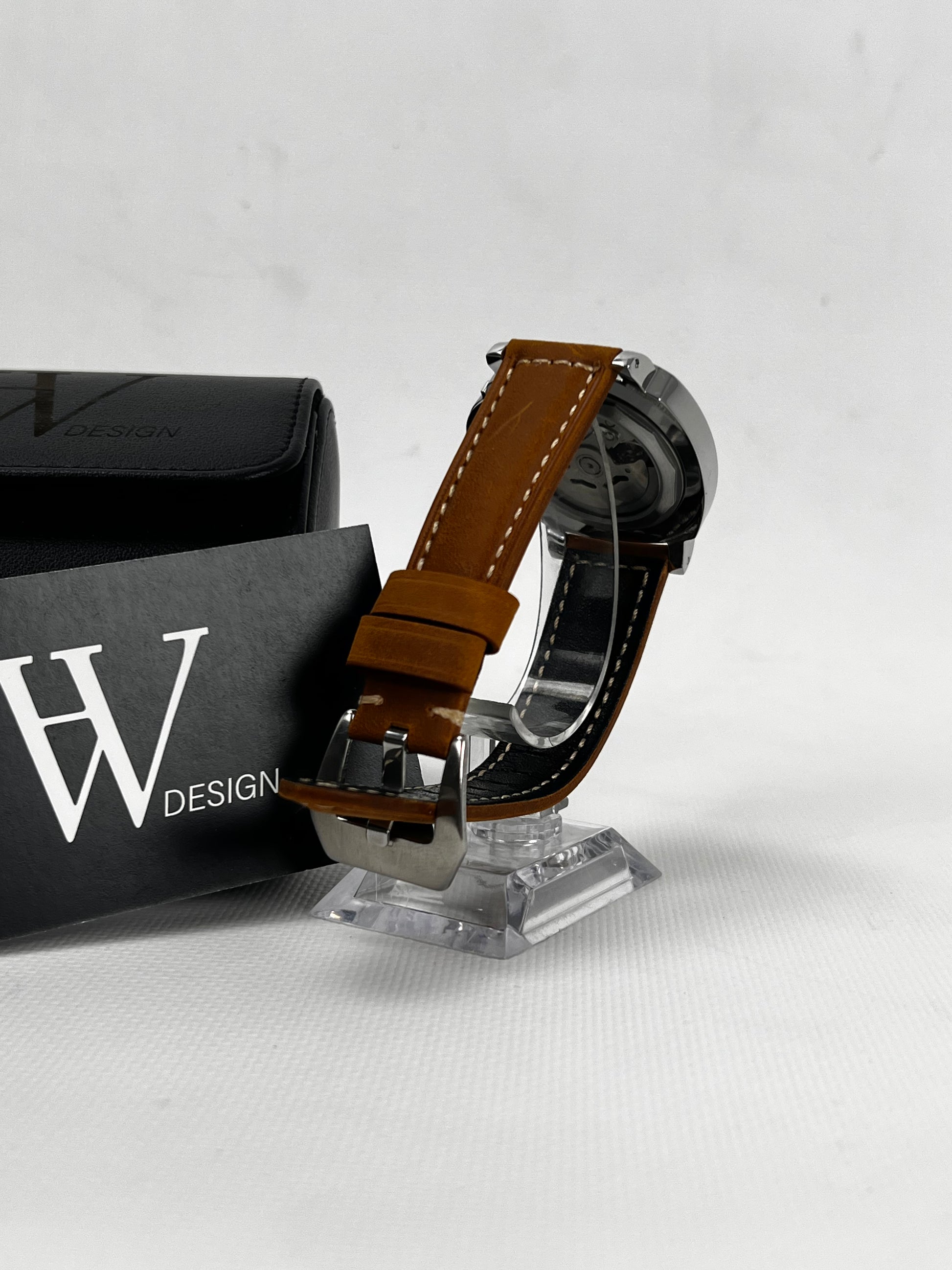 En HW Design creemos que cada reloj merece una presentación de lujo. Es por eso que hemos diseñado cuidadosamente una experiencia de desempaquetado excepcional para igualar la calidad de nuestros relojes personalizados. Su reloj llega en una caja de cuero de alta calidad, diseñada para brindar elegancia y durabilidad. La textura suave, las costuras refinadas y la sensación premium lo convierten en un estuche de almacenamiento perfecto para su reloj. Al abrir la caja, se encuentra con una impresión elegante y sofisticada, que garantiza que su nuevo reloj se presente de la mejor manera posible. Más que un simple embalaje, nuestra caja de cuero es una declaración de calidad y artesanía, diseñada para proteger y exhibir su reloj en los años venideros.
